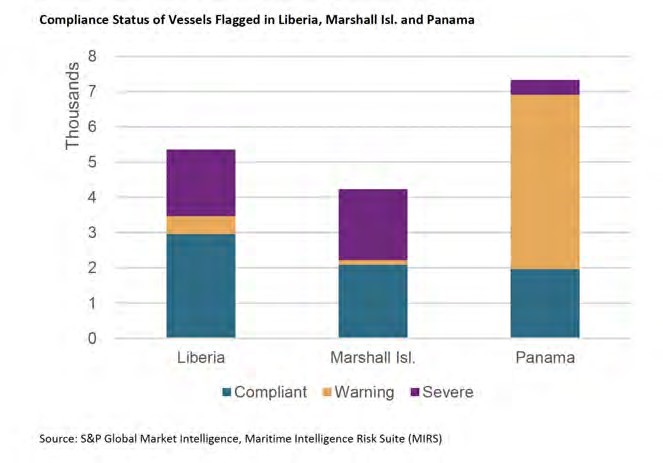 Since mid-2020, the U.S. OFAC and U.K. OFSI issued guidelines alerting financial institutions to monitor vessels carrying financed goods for possible sanctions violations, and the industry consensus has been that the flag of a vessel is not by itself an indicator of any illicit activity.