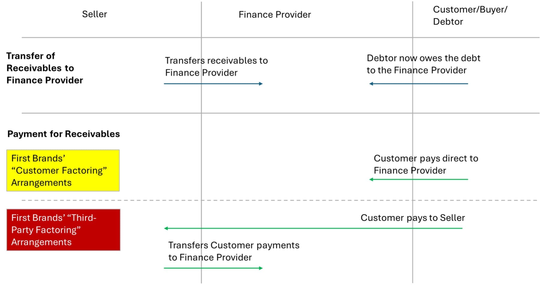 Unlike “Customer Factoring” which is buyer-arranged financing (Payables Finance), First Brands’ “Third-Party Factoring” arrangements point to factoring that First Brands enters into with its own financial institution partners, i.e. it is a seller-led financing arrangement.